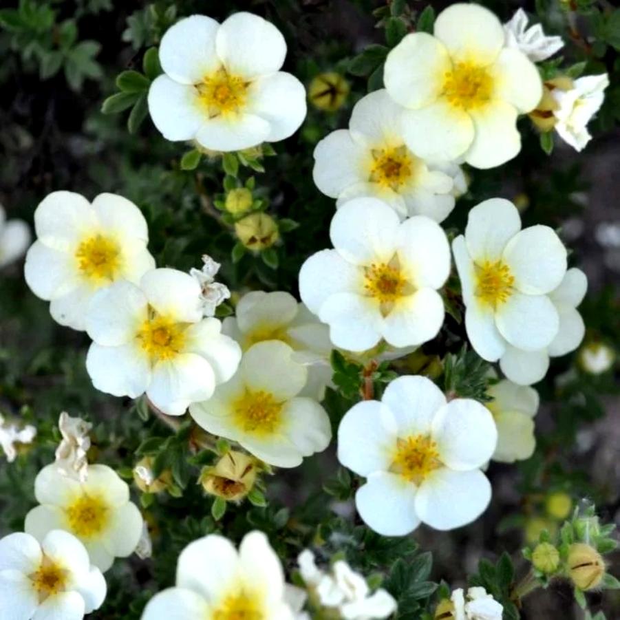 Лапчатка Mount Everest листопадный кустарник 0,8-1 м высоты. Крона до 1 м диаметром, слабо раскидистая, плотная, густооблиственная. Листья непарноперистые, с 5 тесно скученными листочками, листочки узко обратноланцетные, желтовато-зеленые. Цветки 3-3,5 см диаметром, белоснежные, очень многочисленные.