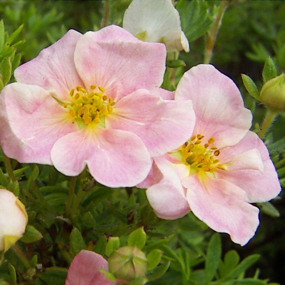 Лапчатка Pink Whisper - не высокий, с сильными вертикальными побегами кустарник. Крона округлая. Листья голубовато-зеленые, сложные. Осенью листья желтеют. Цветки розовые, не яркие. Начинает цвести этот сорт в июне и цветет все лето до осени.