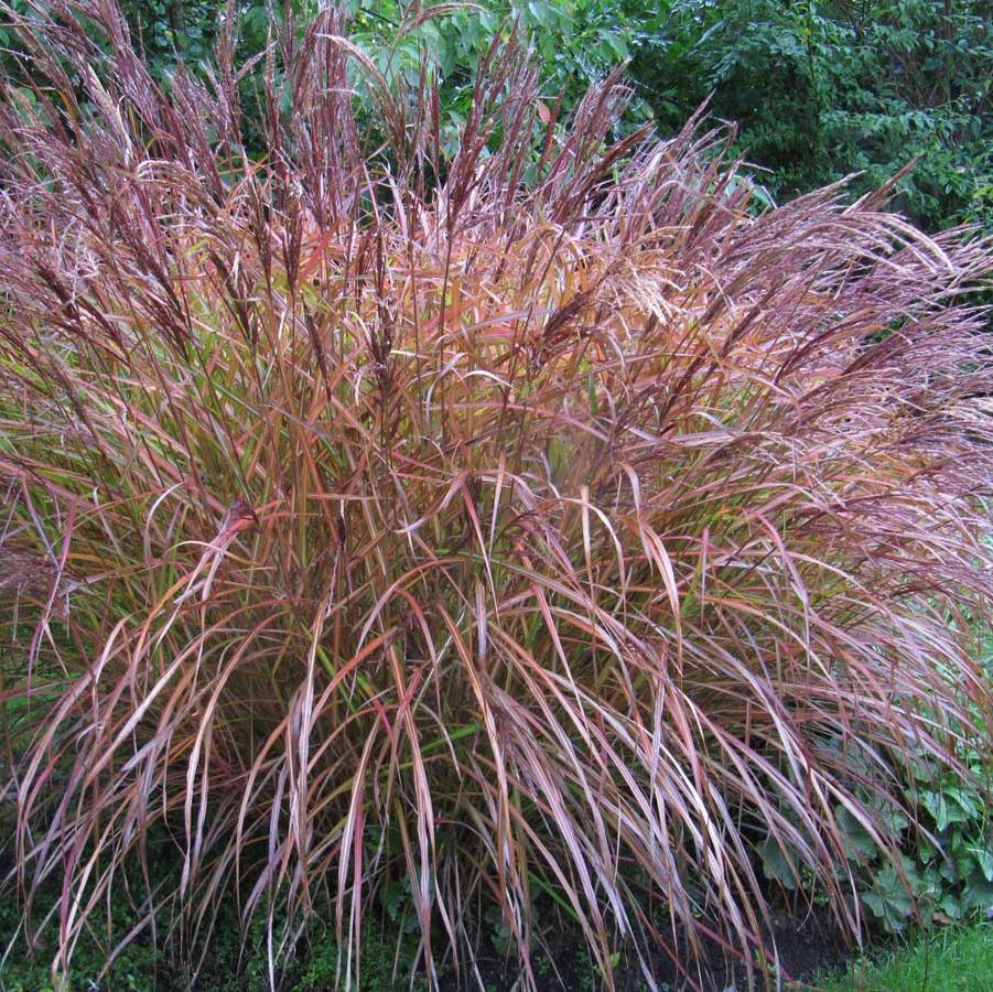 Мискантус китайский Ротфедер - высота растения 180 см, листья темно-зеленые, узкие, цветки красно-коричневые. Мискантусы служат хорошим украшением берега водоемов, их высаживают отдельно или группами в миксбордерах, рокариях, возле газонов. Мискантус китайский Ротфедер декоративен с весны до начала зимы. Осенью их листва окрашивается в различные оттенки желтого, коричневого, бордового цветов. Пушистые соцветия используют для создания флористических композиций.