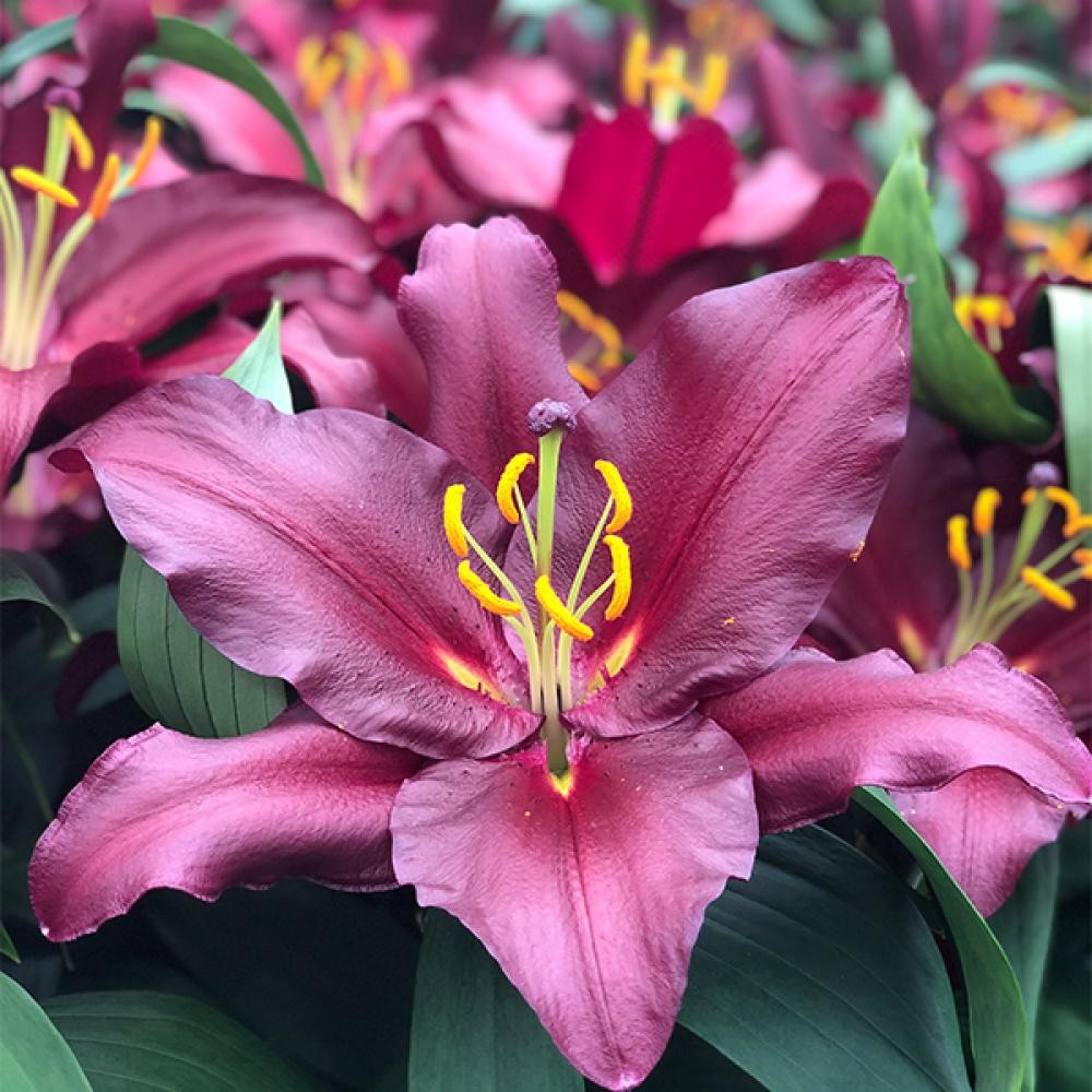 Лилия восточная "Бомбастик" (Bombastic) - это редкая красавица в восточном семействе гибридов с большим цветком. От нее сложно оторвать взгляд: бутоны благородного насыщенно-бордового оттенка, крупные. Тычинки — темно-вишневые с оранжево-медовым окрасом пыльника. В каждом соцветии по несколько бутонов. Благоприятные условия способствуют разрастанию цветка до 130 см в высоту. Обладает приятным ароматом. Изысканная красота Лилии восточной Бомбастик (Bombastic) по настоящему ценится флористами. Поэтому их часто покупают или выращивают для шикарных букетов на срезку или для придания декоративности любым насаждениям и клумбам.