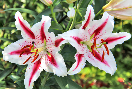 Лилия Hotspot обладает чистым снежно-белым окрасом и немного ярко-розовым на жилках. На лепестках присутствует темный крап. Цветок крупный, до 25 см в диаметре. Период цветения июль - август. Сорт отличается зимостойкостью.