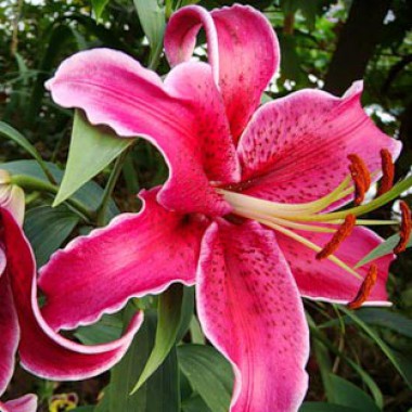 Лилия Corvara отличается большими красно-пурпурными цветами с темно-красными пятнышками и белой каймой. Обладает насыщенным ароматом. На одном стебле образуется 5 и более бутонов. Диаметр цветка – 15 см. Высота растения – около 120 см. Период цветения – июль- август. Подходит для срезки.