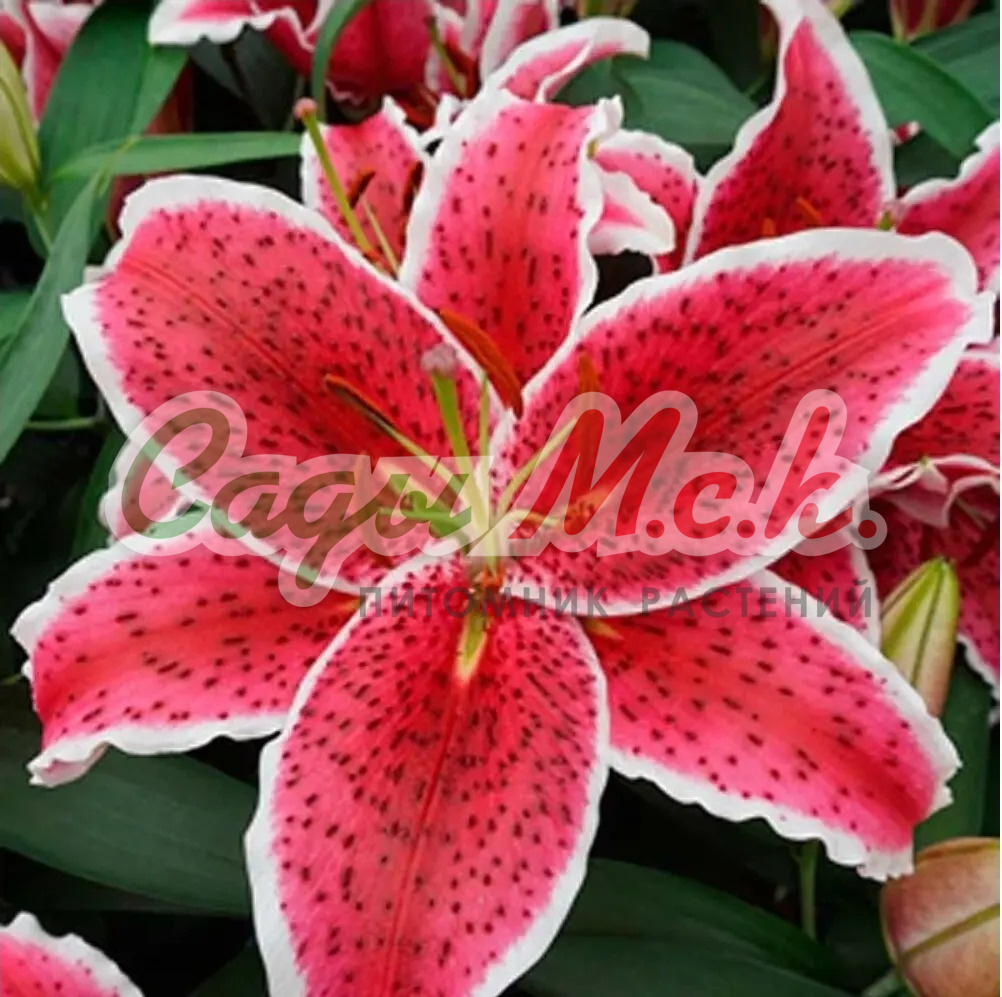 Луковицы лилии восточной Милессимо (Lilium hybrid oriental Milessimo) — это изысканное сочетание благородных оттенков. Украшением этого сорта становятся крупные (до 22 см в диаметре) светлые цветы, которые распускаются в конце лета и распространяют сильный аромат. Лепестки белого цвета, а на их краях находится тонкая лиловая кайма. Благодаря ажурной окантовке и темным контрастным пыльникам букеты из этих цветов выглядят особенно пышными и воздушными. Лилия Милессимо может расти в открытом грунте круглый год. Она устойчива к жаре и заморозкам, обильно цветет на солнечных участках и в полутени. Также Лилия восточная Милессимо подходит для среза — благодаря высоким (до 110 см), крепким стеблям и надежным соцветиям, долго хранится и не увядает.
