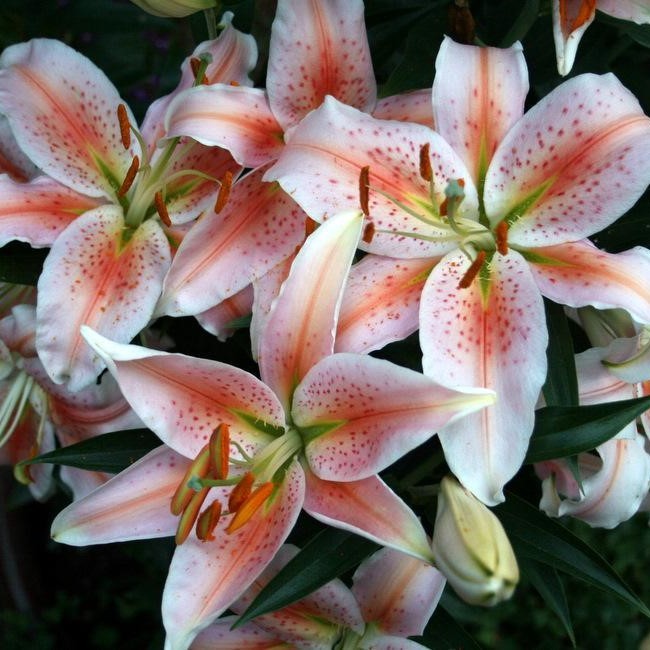 Луковицы лилии восточной Сэлмон Парти (Salmon Party) пока мало распространены в отечественных садах. Этот редкий сорт своими огромными изящными цветками похож на пышное розовое облако. Диаметр раскрытого бутона достигает 25 сантиметров, широкие лепестки с волнистыми краями слегка отогнуты. Цвет их светло-розово-лососевый, с усилением желтого оттенка к горловине. Центральная жилка лепестка окрашена более интенсивно. Цветение лилии наступает в конце июля и длится весь август. На высоких стеблях одновременно может раскрыться до 5 бутонов, которые не выгорают на солнце и долго не осыпаются. Лилия восточная Сэлмон Парти подходит для срезки. Несмотря на свою пышную красоту Сэлмон Парти довольно неприхотливое растение, которое требует только хорошо освещенного плодородного участка и защиты от сильного ветра.