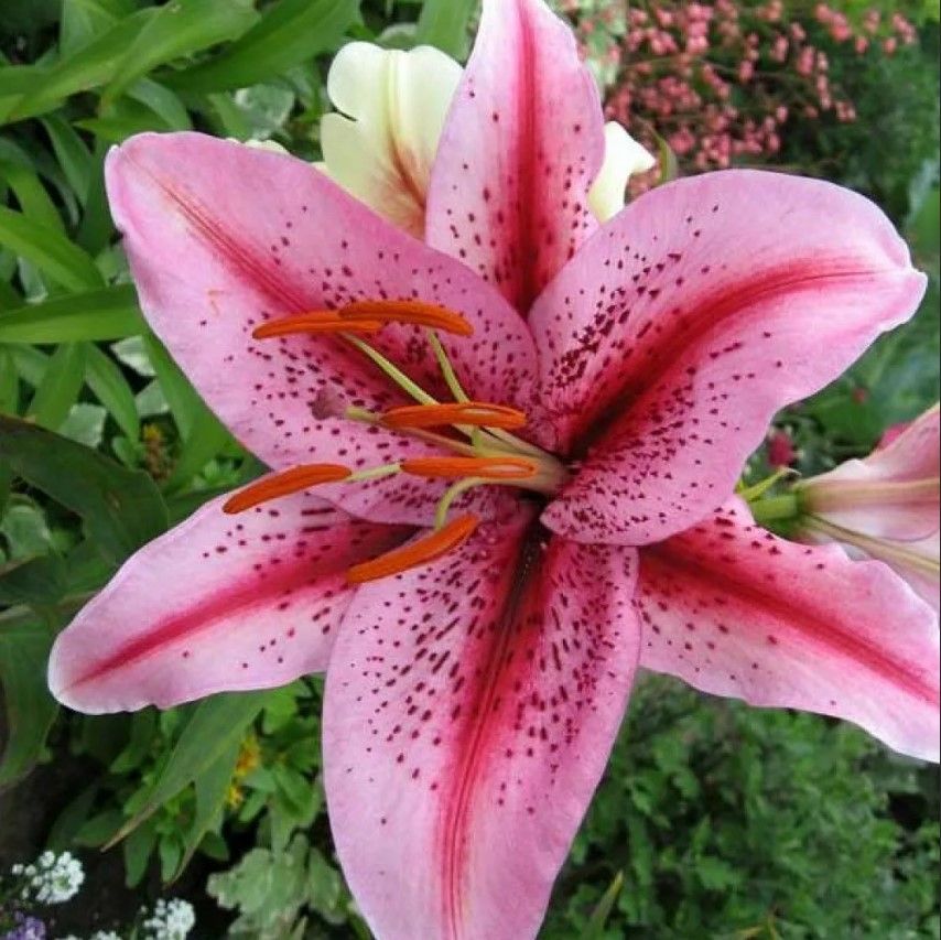 Лилия восточная Тайгер Эдишн (Lilum oriental Tiger Edition) по праву занимает центральное место на клумбах. Высота стебля — 90 см, зелень светлая, предпочитает слабокислые, хорошо дренированные почвы в солнечных, защищенных от ветра местах. Цветки совершенно роскошные. Светло-розовые широкие лепестки с волнистыми краями, загнутые от центра, с темно-розовой насыщенной полосой по центральному сгибу, большое количество темного крапа от основания лепестка до середины. Лилия восточная Тайгер Эдишн имеет сильный, сладкий аромат. Используется для срезки, групповых и смешанных посадок.