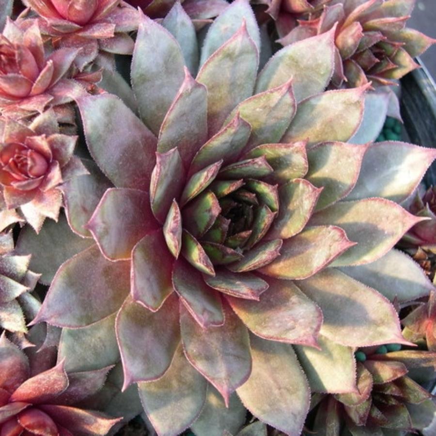 Молодило Galahad - многолетнее травянистое растение. Листья длинные, заостренные в вершины-иголки. Их окрас весьма необычный: зеленый с бордовой вершиной и каймой. Также на зеленом фоне просвечивается бордовый оттенок.
