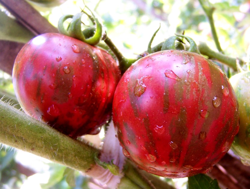 Помидор Violet Jasper - очень редкий сорт. Растение высокое, среднего срока созревания. Плоды идеально-круглые, полосатые, красно-фиолетово-зелено-коричневого цвета, с нежной, сочной мякотью и сладким, приятным вкусом. Урожайность высокая.