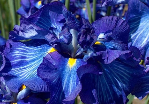 Ирис Electric Rays обладает хорошо гофрированными светло-абрикосовыми стандартами с пурпурными тонами по середине лепестков и темно пурпурные фолы с белым паттерном люминаты. Бородка мандариновая. Высота цветоноса 84 см.