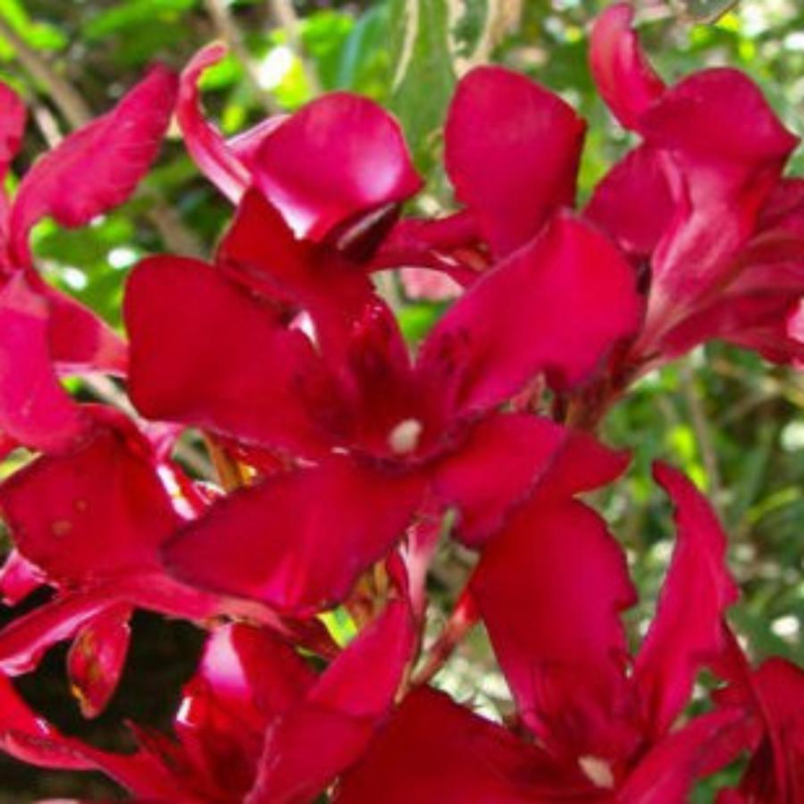 Олеандр обыкновенный Фаерволкер (лат. Nerium oleander Firewalker) - прекрасное цветковое растение. Цветки сорта огромные, состоят из 5-ти насыщенно-красных лепестков с широкими краями. Тычинки тонкие, темно-красные. Цветки обладают очень душистым ароматом. Внимание! Олеандр - ядовитое растение, поэтому при его культивировании требуется осторожность.