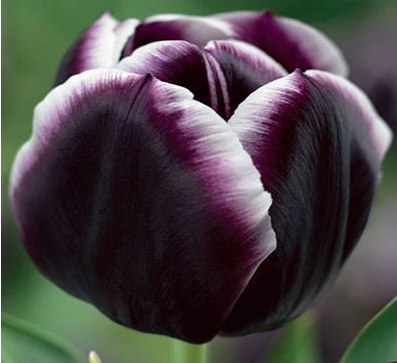 Тюльпан Jackpot относится к группе Триумф. Высота растения 45-55 см. Листья зеленые, однотонные. Цветок крупный, бокаловидный, темно-фиолетовый, с белой каймой по краям лепестков. Высота бокала цветка до 10 см. Размер луковицы - 8-10 см.