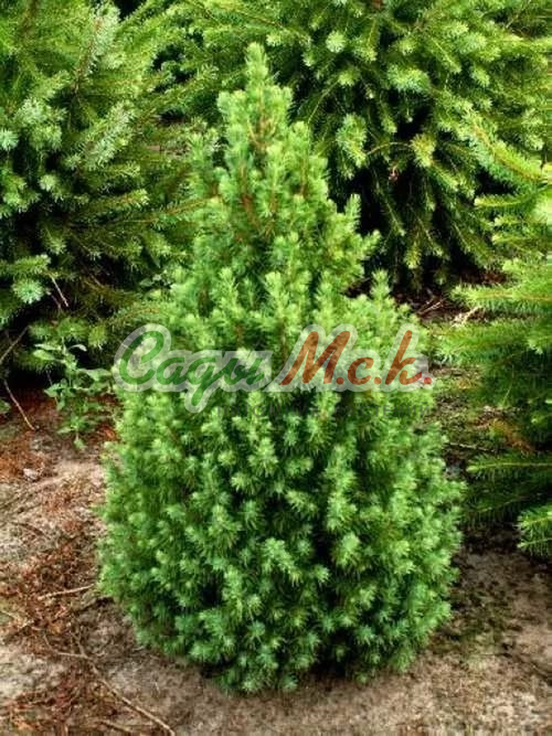 Ель канадская Conica - карликовая конусовидная форма. Высота 3-4 м, диаметр кроны 2 м. Годовой прирост в высоту 6-10 см, в ширину 3-5 см. В 35 лет высота 3,6 м у некоторых экземпляров. Самое старое растение в возрасте 60 лет имеет высоту 4 м. Крона густая. Хвоя мягкая, светло-зеленая. Сорт используется при одиночных посадках, в группах, альпинариях. Ель канадская Коника декоративна благодаря правильной, конической форме кроны.